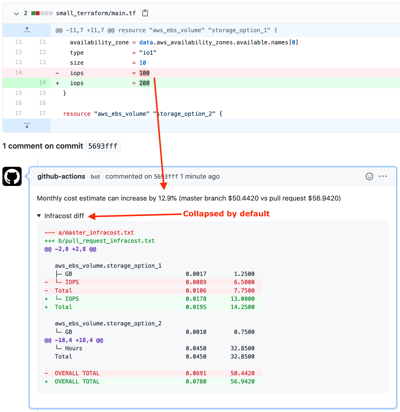 percentage_thresholdcan be set; for example, only post a comment if the cost estimate changed by +/-5%. - show a